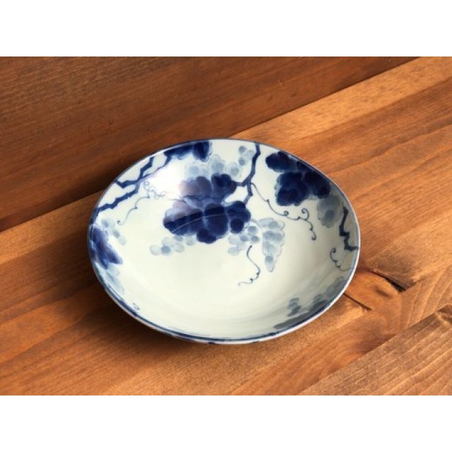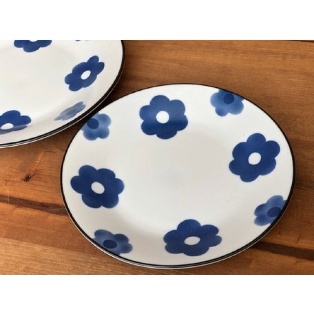 日式陶瓷藍染花紋瓦碟 17CM (日本製)