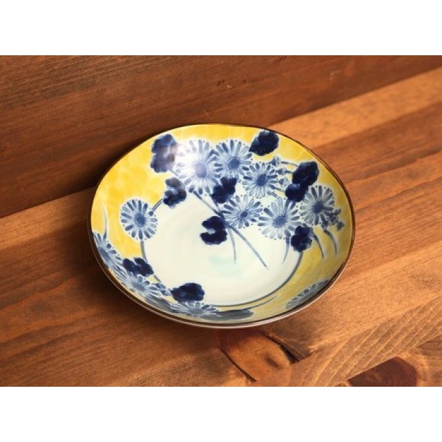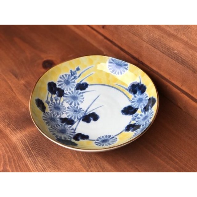 日式陶瓷黄彩花紋瓦碟 17CM (日本製)