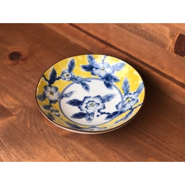 日式陶瓷黄地草花瓦碟 17CM (日本製)