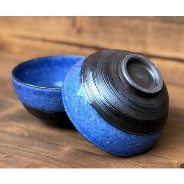 日式陶瓷南蛮飯茶手工瓦碗 (藍色) 11CM (日本製)