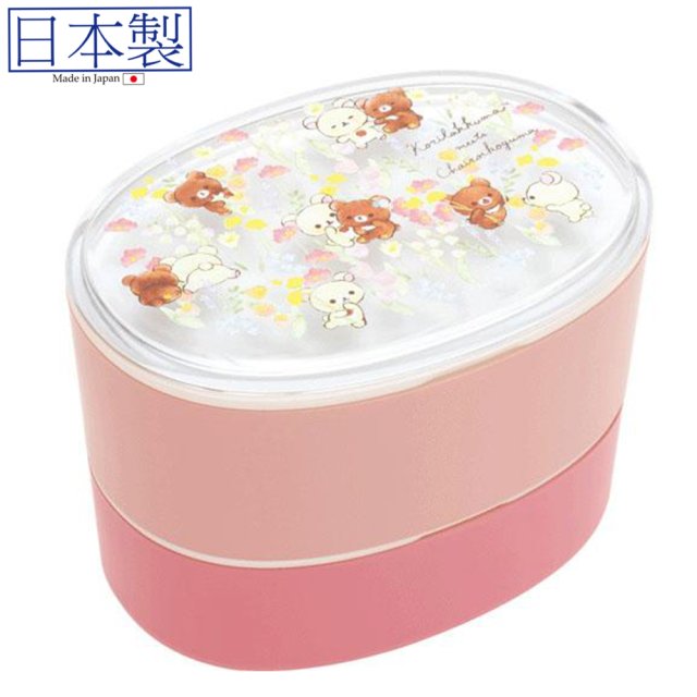 鬆池熊雙層飯盒(粉紅色) (日本製)