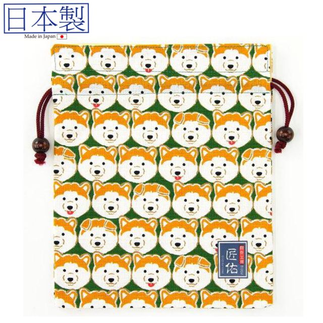 可愛柴犬日式索繩袋 (綠色) (日本製)