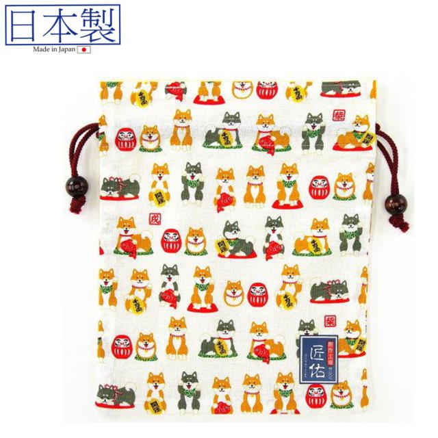 可愛柴犬日式索繩袋 (米白色) (日本製)