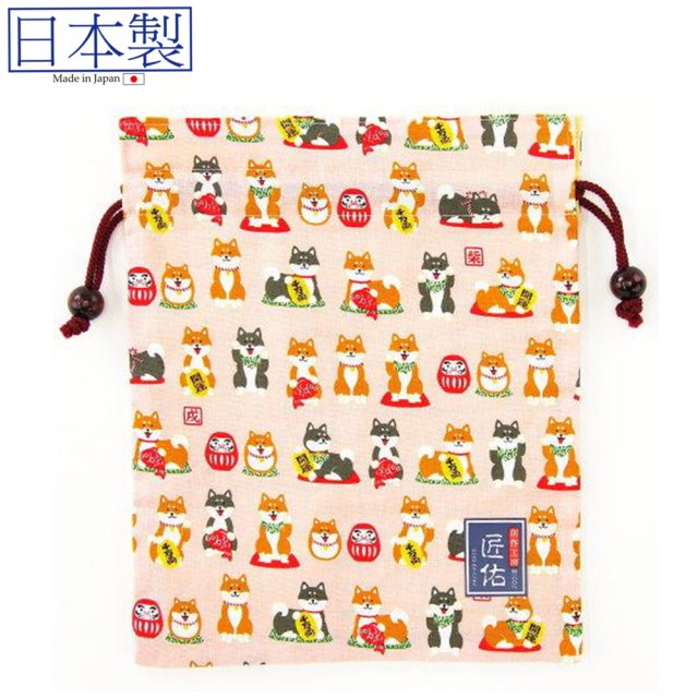 可愛柴犬索繩袋 (淺粉紅色) (日本製)
