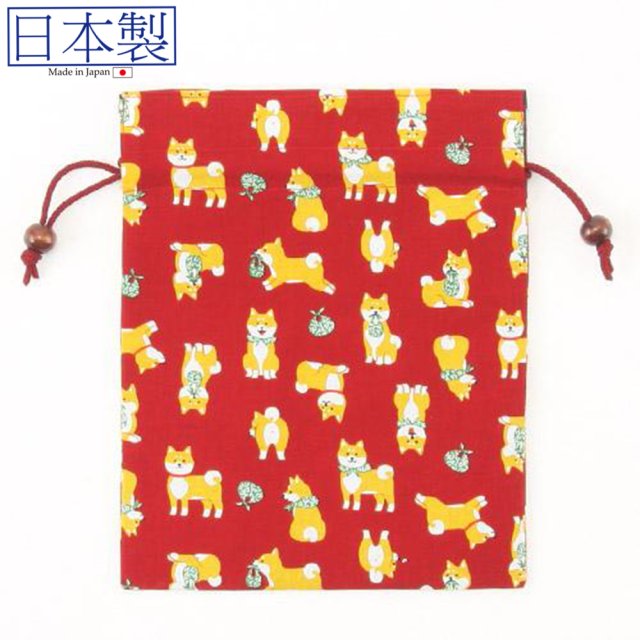 可愛柴犬復古索繩袋 (紅色) (日本製)