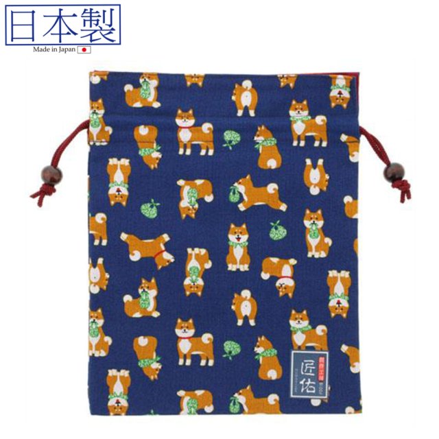 可愛柴犬復古索繩袋 (藍色) (日本製)
