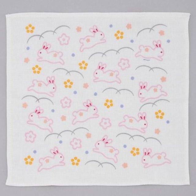 日式紗布方巾 (粉紅色玉兔) 25x25 (日本製)