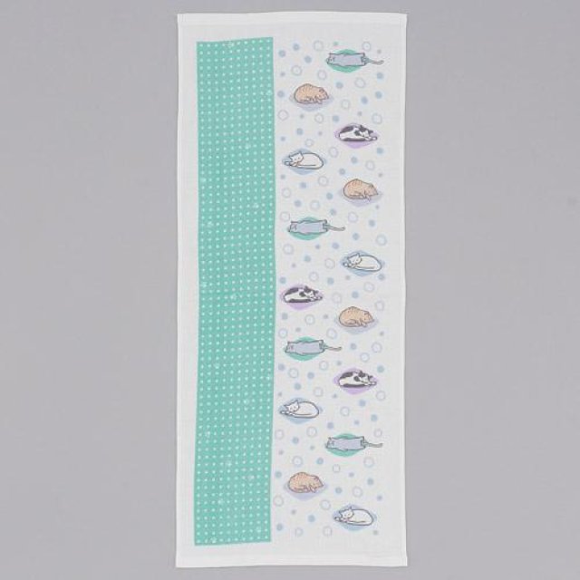 日式紗布方巾 (綠色貓貓) 34x85 (日本製)