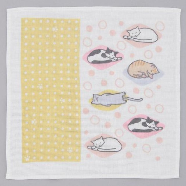 日式紗布方巾 (黃色貓貓) 34x85 (日本製)