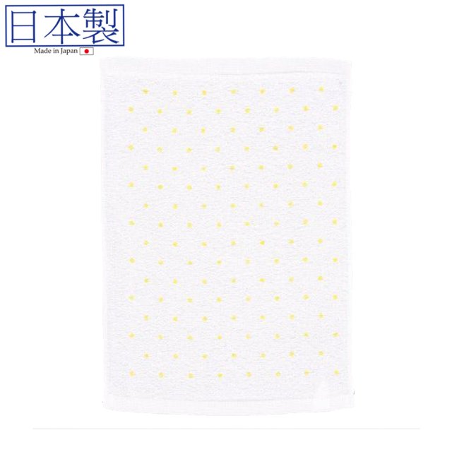 印花圓點白色毛巾(黃色) (日本製)