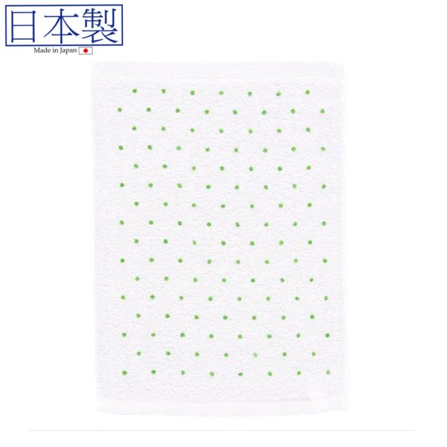 印花圓點白色毛巾(綠色) (日本製)