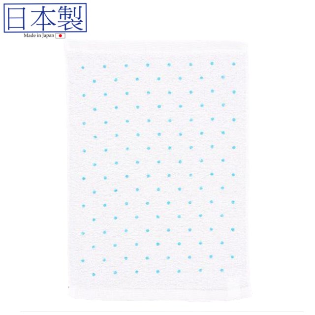 印花圓點白色毛巾(藍色) (日本製)