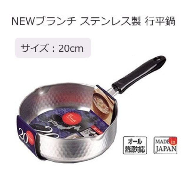 日本不銹鏡雙嘴行平鍋 20CM (電磁爐OK) (日本製)