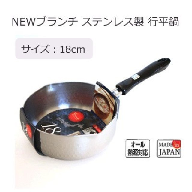 日本不銹鏡雙嘴行平鍋 18CM (電磁爐OK) (日本製)