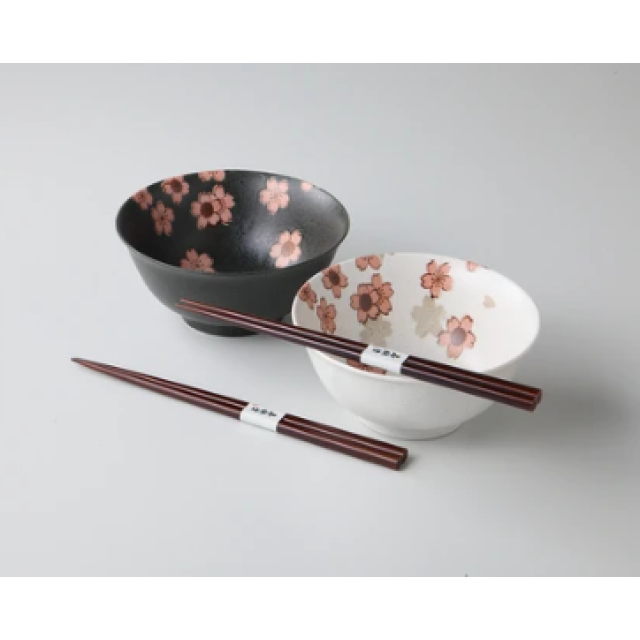 日本美濃燒陶瓷櫻花瓦碗連筷子套裝 (日本製)