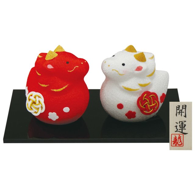 日式人造絲紅白開運龍仔擺設 (日本製)
