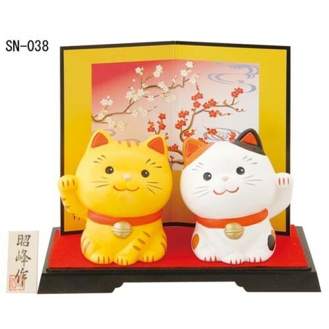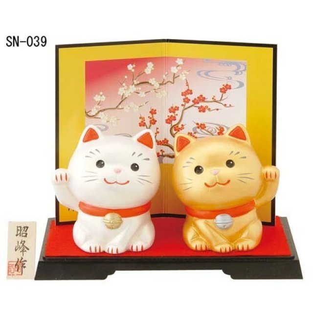 日式陶器幸福を招貓貓擺設(金銀) (日本製)
