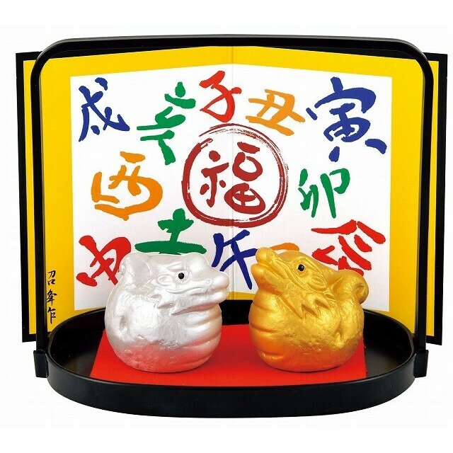 日式陶器開運招福金銀福辰龍年擺設 (日本製)