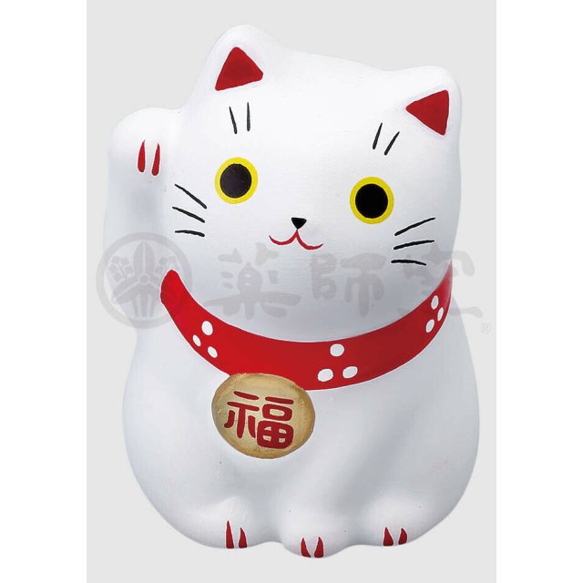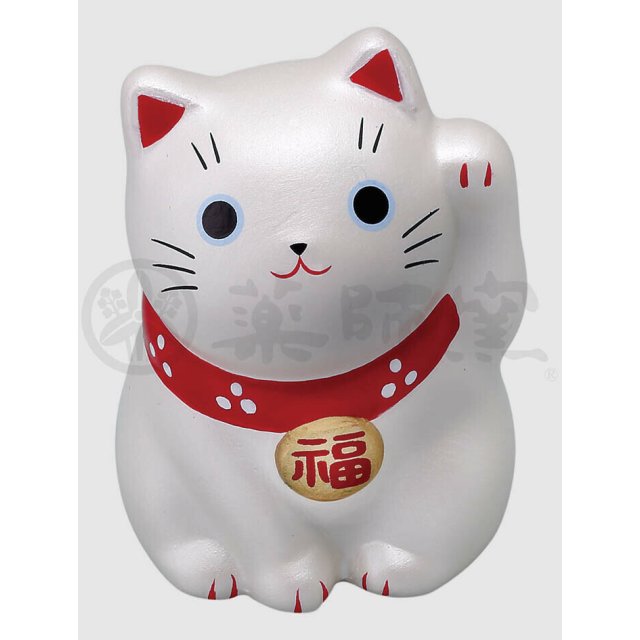 日式陶器幸福を招錦彩招財貓(白) (日本製)