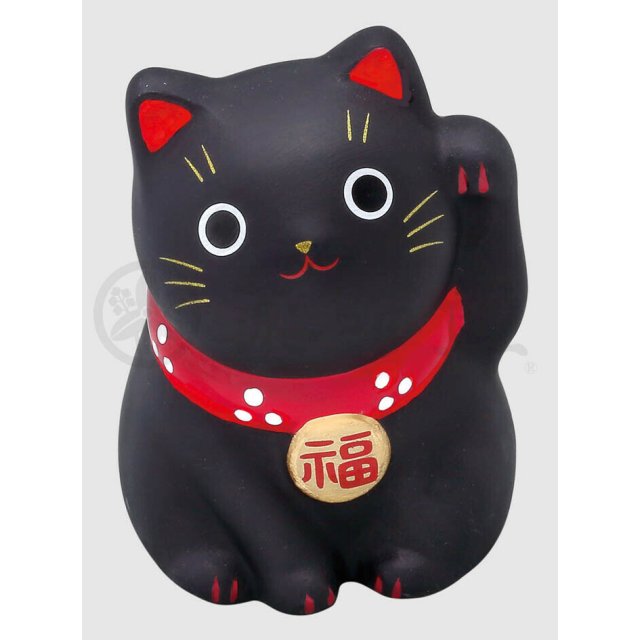 日式陶器幸福を招錦彩招財貓(黑) (日本製)