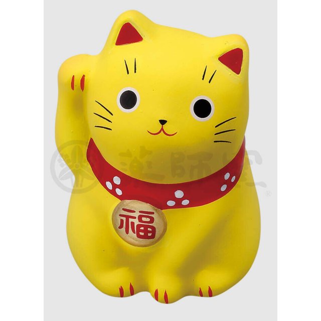 日式陶器幸福を招錦彩招財貓(黃) (日本製)