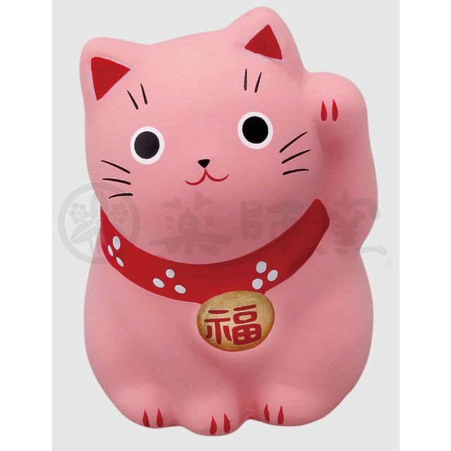 日式陶器幸福を招錦彩招財貓(粉紅) (日本製)