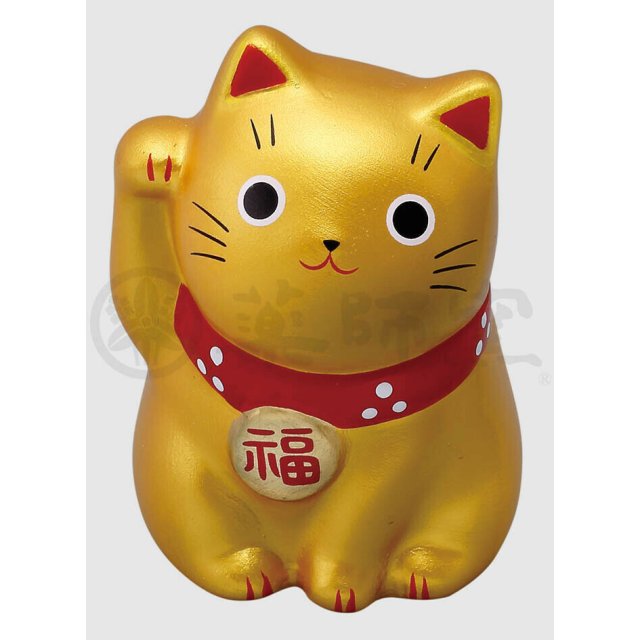 日式陶器幸福を招錦彩招財貓(金) (日本製)