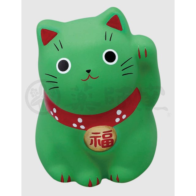 日式陶器幸福を招錦彩招財貓(綠) (日本製)