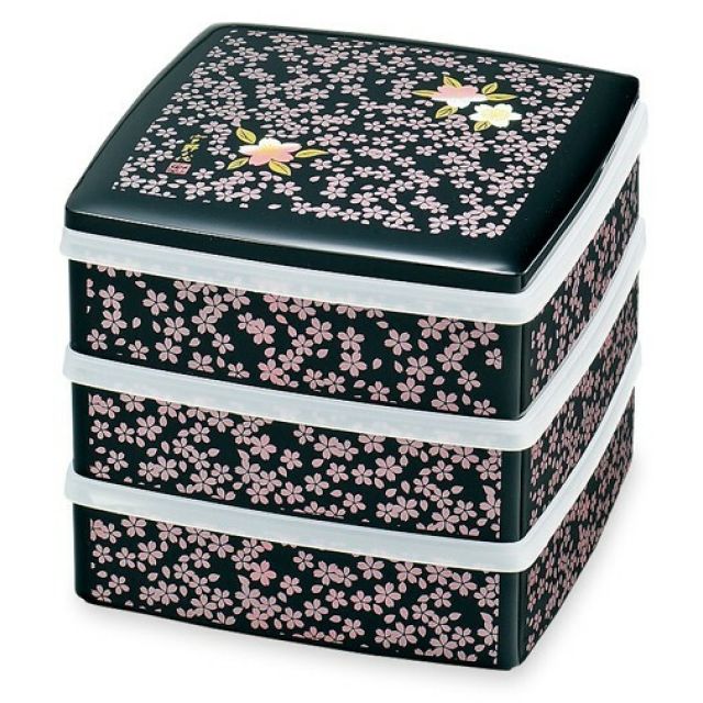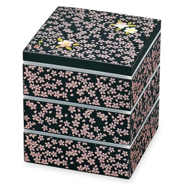 日式雅櫻胴張三段重盒(粉黑) (日本製)