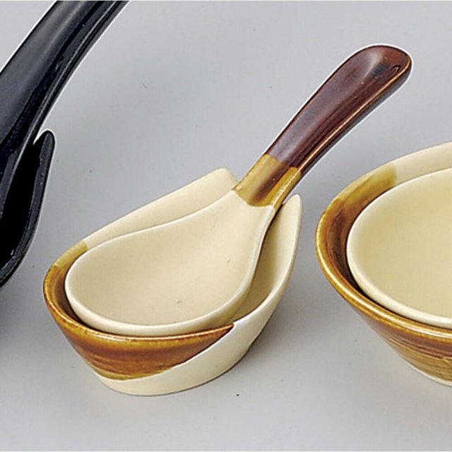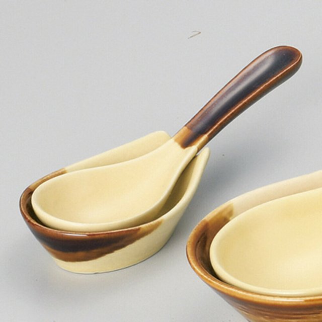 日本萬古燒淡黃啡瓦匙羹(日本製)