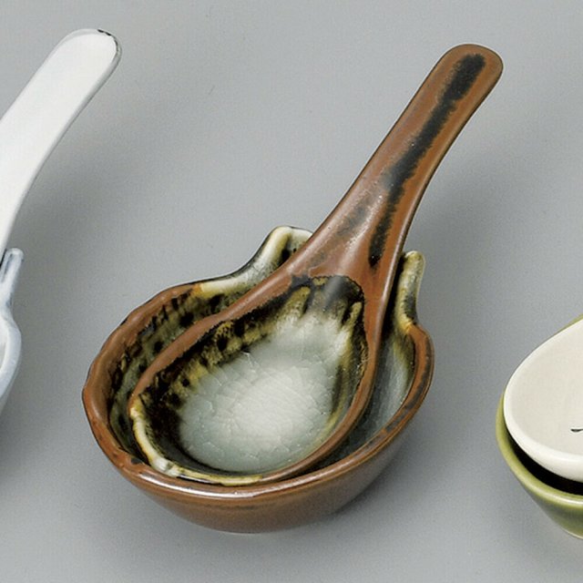 日本萬古燒啡色瓦匙羹(日本製)