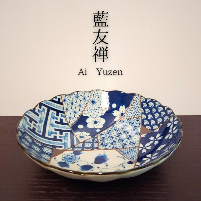 日本美濃燒藍友禅瓦碟20.7CM (日本製)