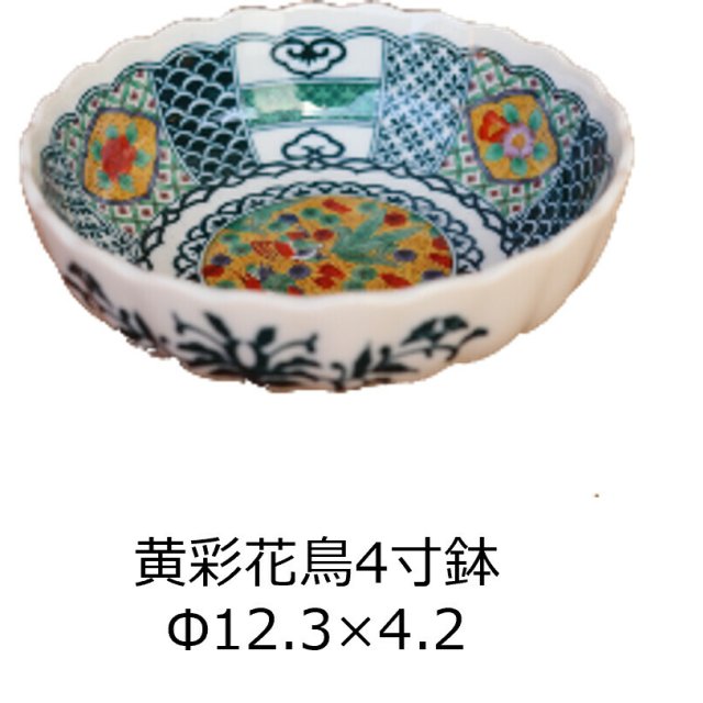 日本美濃燒黄花鳥瓦碗12.3CM (日本製)