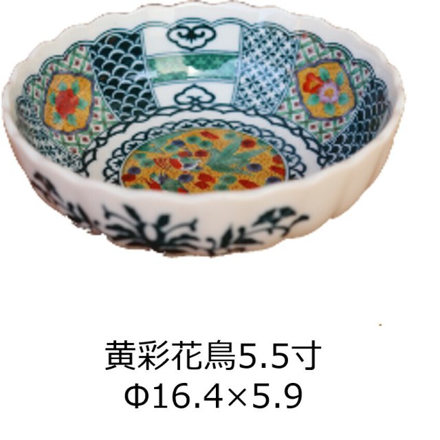 日本美濃燒黄花鳥瓦碗16.4CM (日本製)