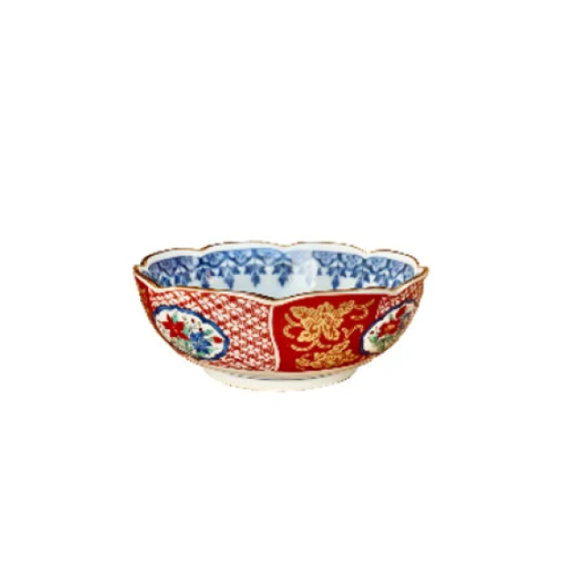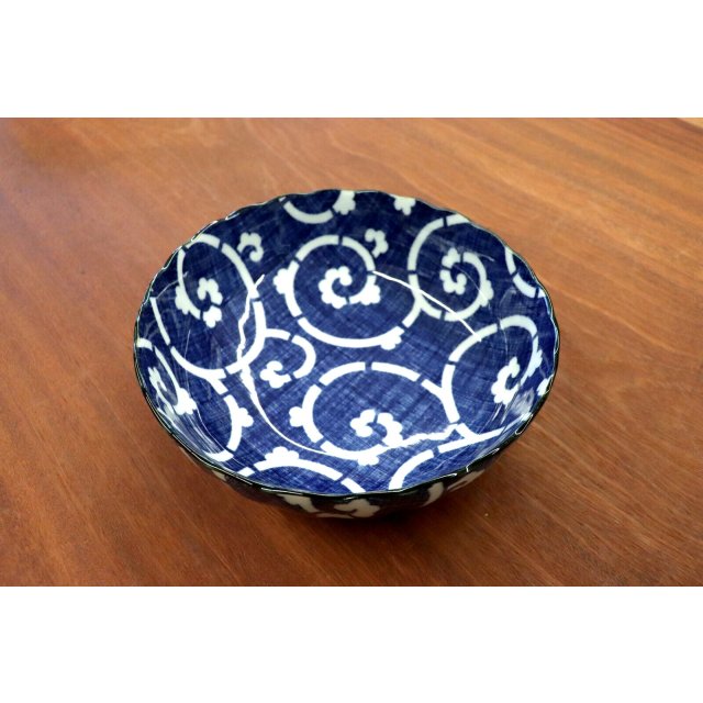 日本美濃燒菊形唐草瓦碗20.6CM (日本製)