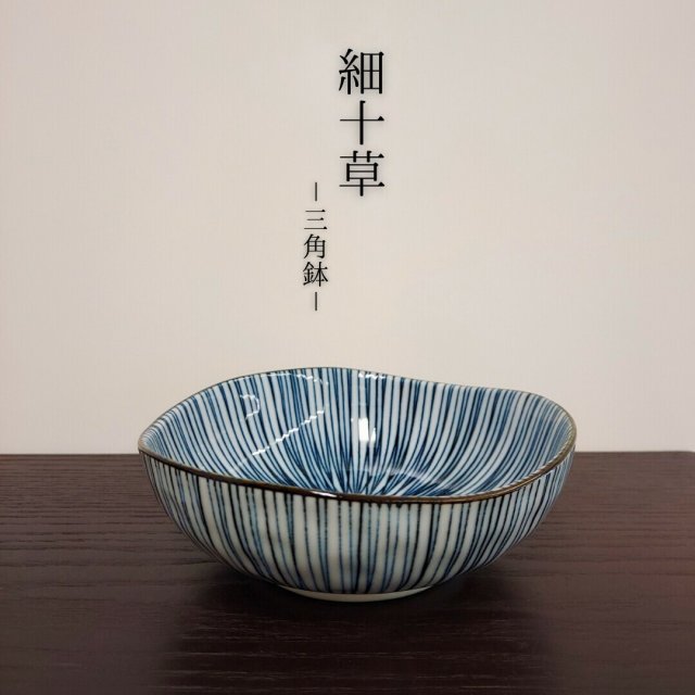 日本美濃燒細十草三角鉢瓦碗16.7CM (日本製)
