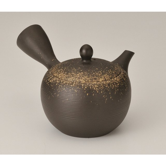 日本常滑燒急須富仙黒高丸千段金吹茶壺 (日本製)