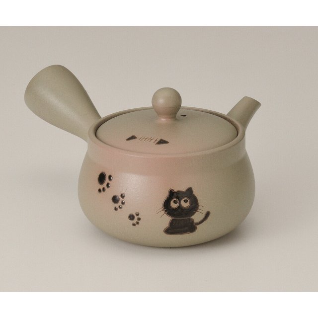 日本常滑燒急須山房浅袋黒猫茶壺 (日本製)