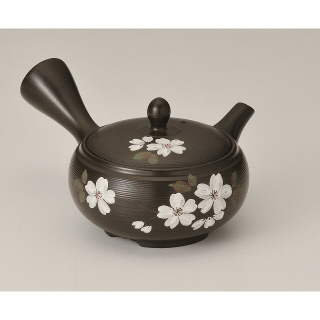 日本常滑燒急須黒中平丸櫻茶壺 (日本製)