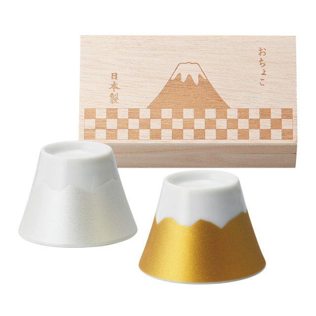富士山陶瓷杯木製禮盒套裝 (金銀) (日本製)