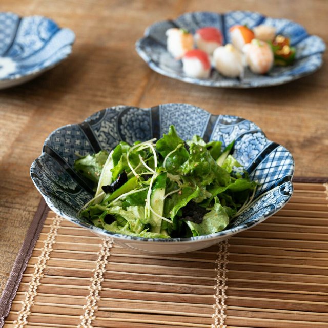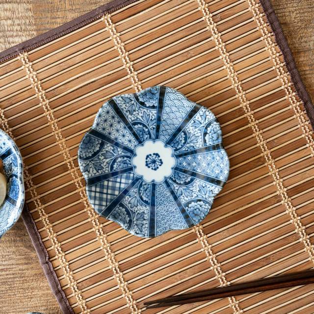 日本美濃燒藍京花瓦碟16CM (日本製)