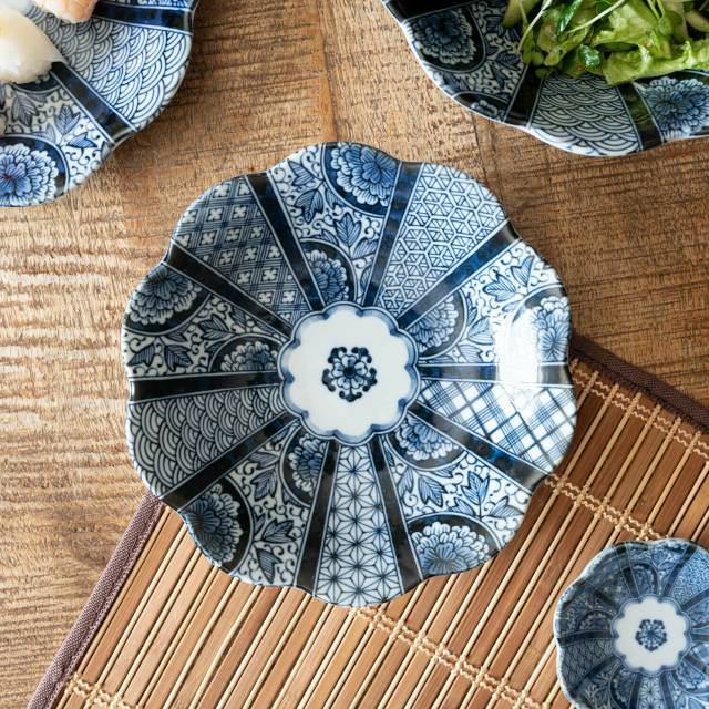 日本美濃燒藍京花瓦碟24CM (日本製)