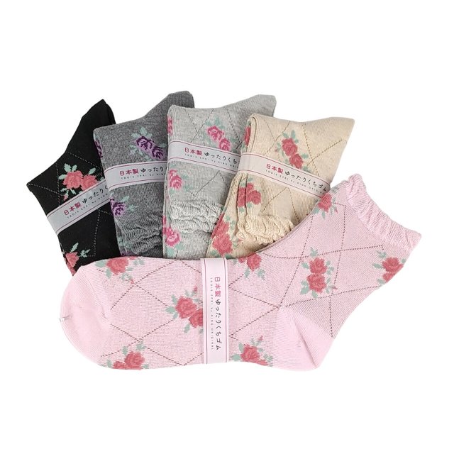 日式薔薇圖案襪 (日本製)