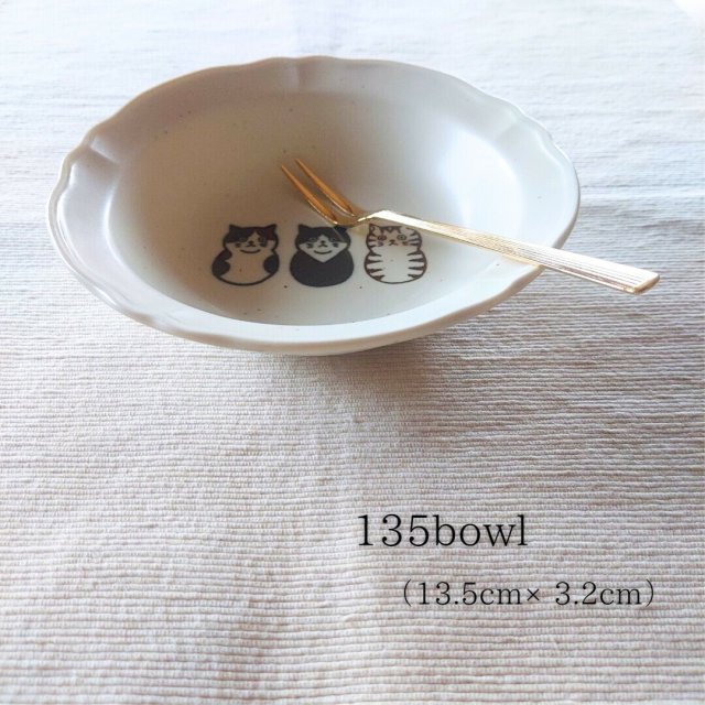 日本美濃燒三匹の猫瓦碗13.5CM (日本製)