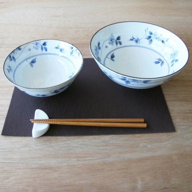 日本美濃燒藍小花瓦碗16.2CM (日本製)