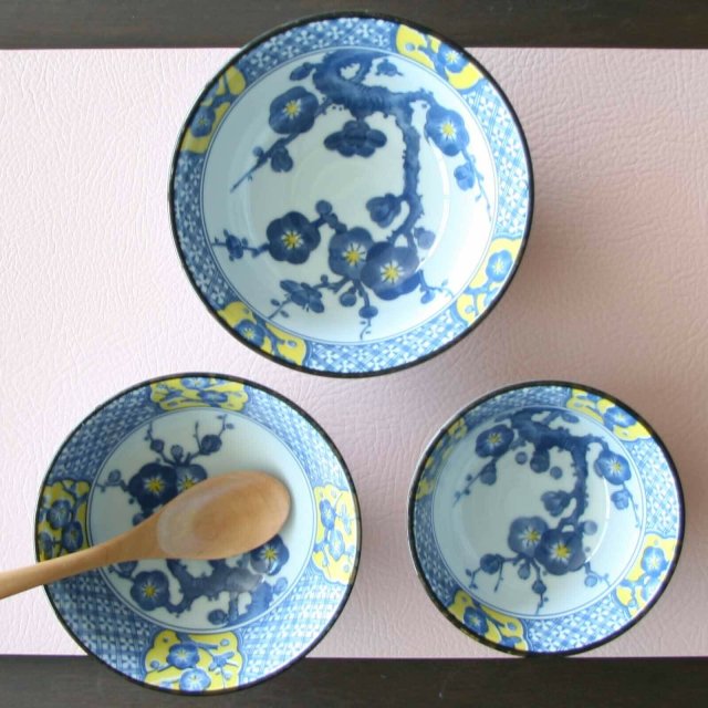 日本美濃燒黄彩梅花瓦碗14CM (日本製)
