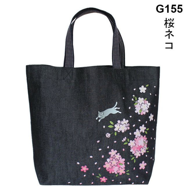 日本倉敷牛仔靛藍櫻花貓貓手提袋 (日本製)
