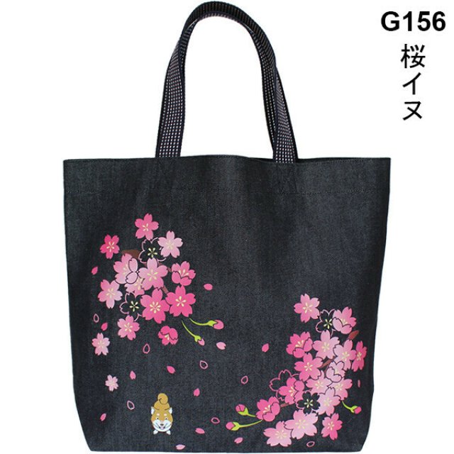 日本倉敷牛仔靛藍櫻花柴犬手提袋 (日本製)