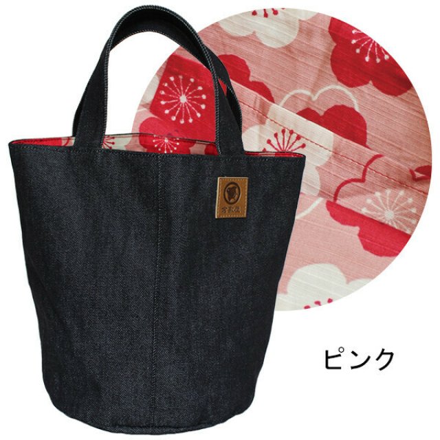 日本倉敷牛仔靛藍暗花手提袋(粉) (日本製)