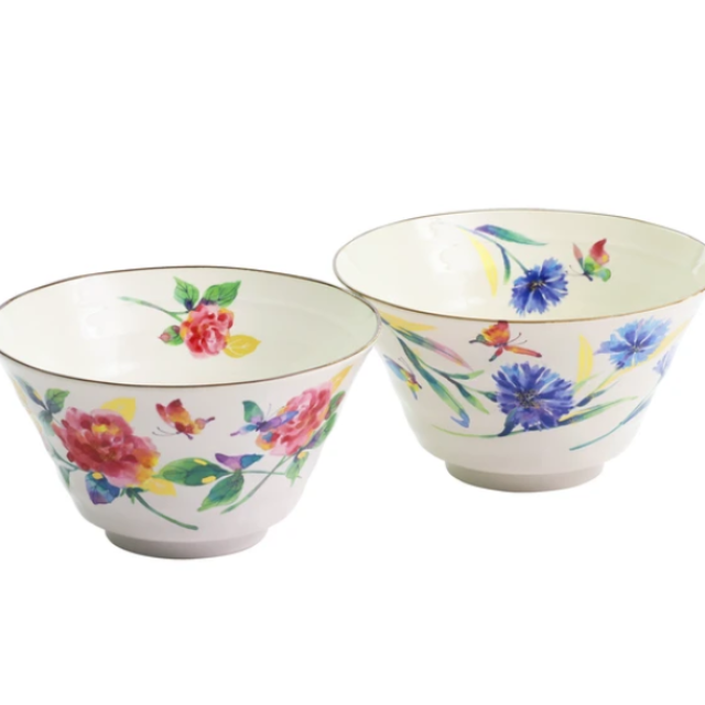 日本美濃燒花胡蝶麺鉢瓦碗禮盒套裝17CM (2枚入) (日本製)